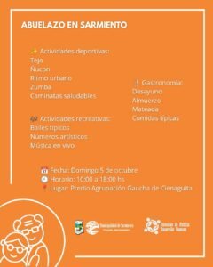 Este 5 de octubre, desde las 10 hasta las 18 hs, en el Predio Agrupación Gaucha de Cienaguita, con una gran jornada de encuentro, diversión y reconocimiento a nuestros adultos mayores Habrá: