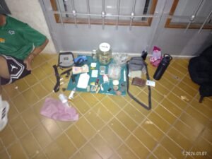 La policía encontró en el vehículo 580g de marihuana en un frasco de vidrio, 560g en envoltorios, 2g en un cigarrillo, 4 paquetitos de papelillos, una balanza, una libreta con anotaciones, 2 picas, una mochila, dinero en efectivo y 2 teléfonos celulares.