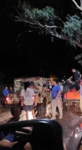 Un colectivo de la empresa El Libertador, línea 142, con pasajeros, también fue arrastrado por la creciente y dejado sin posibilidad de continuar el paso. Entre los vehículos afectados, se encontraban 6 en total, 5 de ellos quedaron colindantes a la Ruta N° 12 y 1 automóvil marca Toyota color blanco quedó en el interior de una finca.