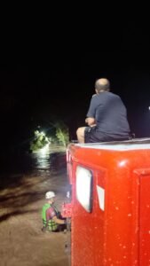 Esta madrugada, un operativo de rescate se llevó a cabo en la Ruta Nº 12, entre el puente del Río Blanco y calle Las Moras, en el departamento de Zonda, luego de que el río se desbordara y arrastrara varios vehículos con personas en su interior.