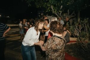 Durante el encuentro a la noche, la intendente Laciar, junto al Pte. Del Concejo Deliberante, Elio Martos Vargas, concejales y vecinos, descubrieron una placa alusiva al nuevo aniversario de la creación del barrio.