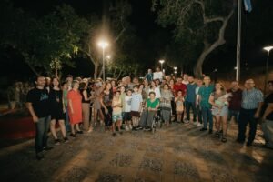 Durante el encuentro a la noche, la intendente Laciar, junto al Pte. Del Concejo Deliberante, Elio Martos Vargas, concejales y vecinos, descubrieron una placa alusiva al nuevo aniversario de la creación del barrio.