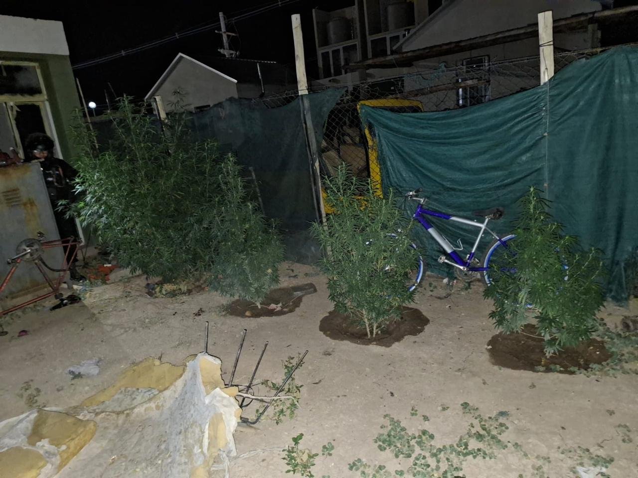 Aunque no se encontró al agresor, los efectivos policiales notaron un fuerte olor a marihuana en el fondo de la propiedad, lo que los llevó a descubrir 5 plantas de aproximadamente 1.80 metros de altura.