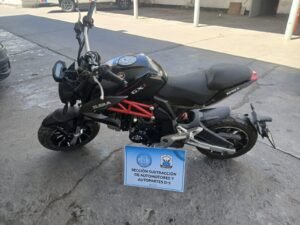Los vehículos secuestrados son una motocicleta marca Gilera, modelo GX1 125cc, de color negro y una motocicleta marca Motomel, modelo Bliz 110cc, de color gris.