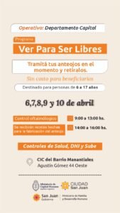 La iniciativa se enmarca en el Programa “Ver para Ser Libres”, impulsado por el Ministerio de Capital Humano, en articulación con el Gobierno de la Provincia —mediante el Ministerio de Familia y Desarrollo Humano— y la Municipalidad de la Ciudad de San Juan.