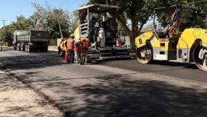 Los trabajos comenzaron hace unos días con tareas previas a la colocación del nuevo pavimento. En ese marco, se inició el fresado del pavimento en inmediaciones de calle Balcarce, uno de los sectores más afectados. Este procedimiento permite retirar la capa superficial existente y corregir imperfecciones. Posteriormente se avanzó hacia el este con las mismas tareas y ya se comenzó con la pavimentación. Hasta el momento, la Dirección Provincial de Vialidad ya repavimentó aproximadamente 1.200 metros de esta avenida.