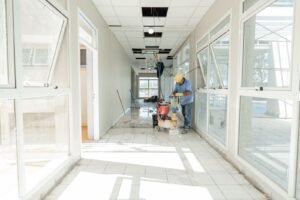*En esta etapa se ejecutan tareas de pintura y terminaciones, pulido fino y lustrado de pisos, colocación de equipamiento técnico, ajustes en instalaciones eléctricas, sanitarias y de gases médicos, además del montaje de carpinterías y divisiones interiores.*